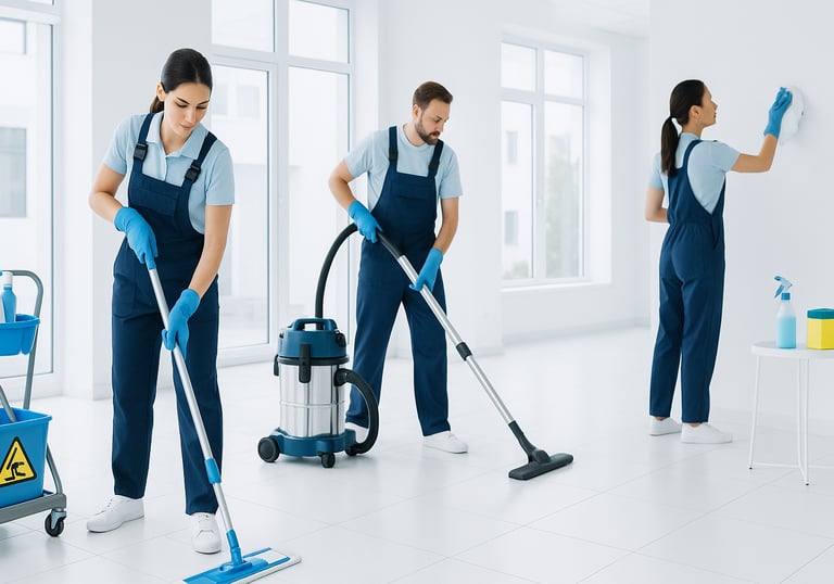 Professional cleaning for villas, offices, labour camps, and post-construction sites.